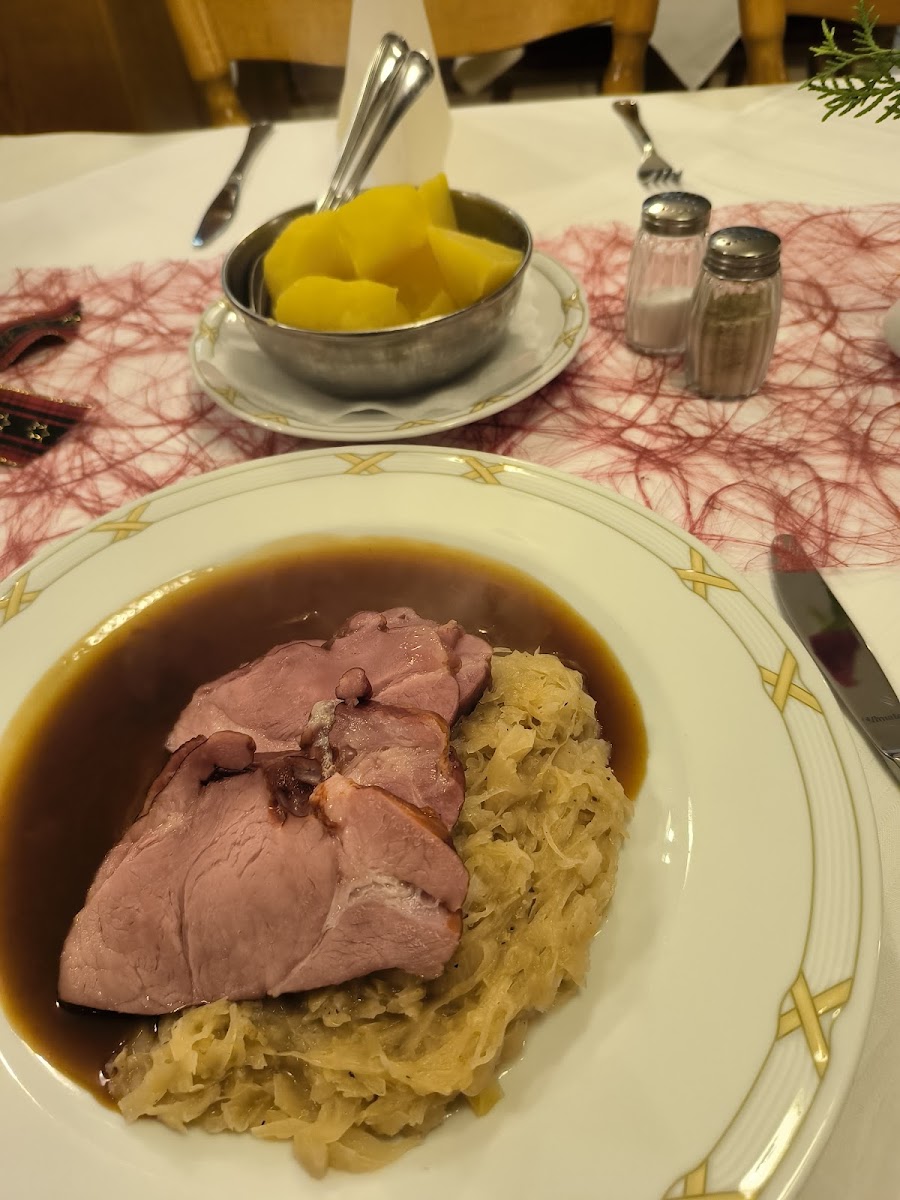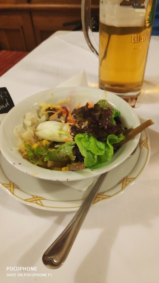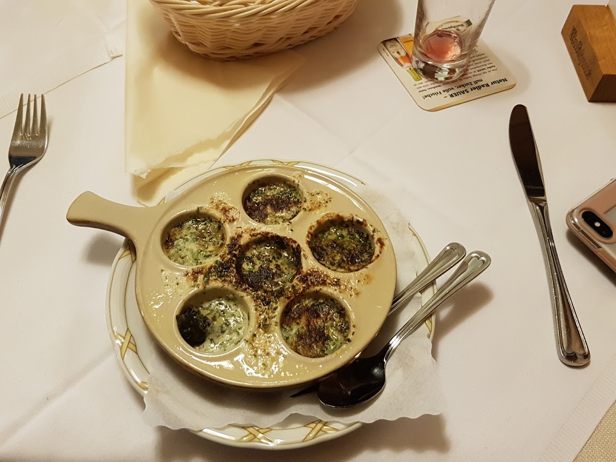 We had a great dinner at Zur Schnecke. The menu is only in German language but our waitresses spoke English and recommended couple of dishes that they are famous for. Meat dishes were a bit salty but they worked well with fresh noodle that came with the dish. They served a special bread with wonderful creamy cheese/ herb/ fresh red pepper spread. Meat dish was served with great bowl of salad with pickled vegetables that complimented each ingredient.